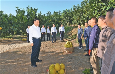 离开时,习近平同村民们亲切道别。他叮嘱,党和政府要继续加强对老区的政策扶持,老区广大干部群众要齐心协力、奋发图强。他祝愿乡亲们的日子过得像金柚一样又甜又美。