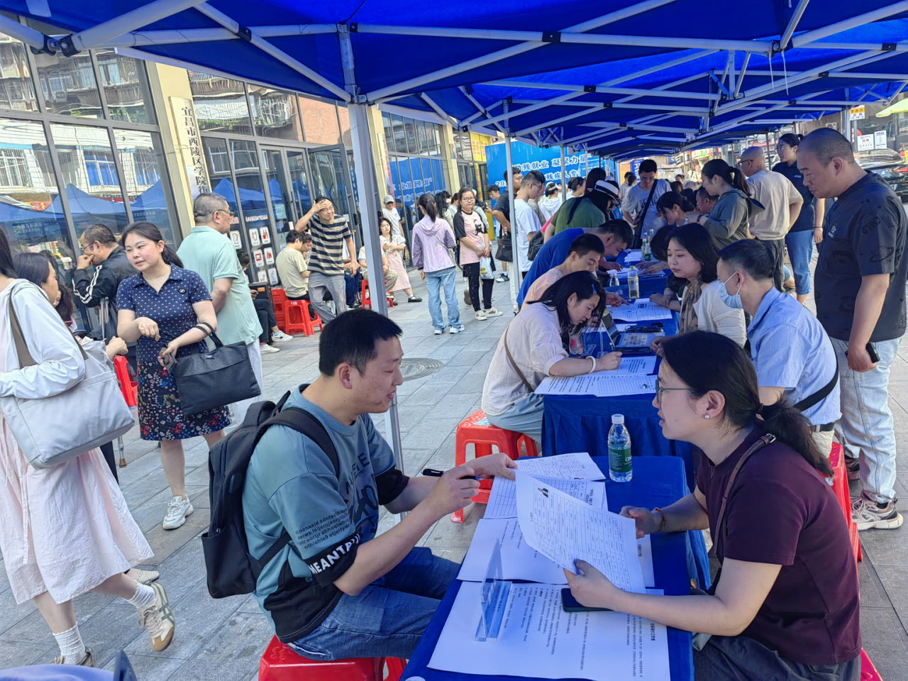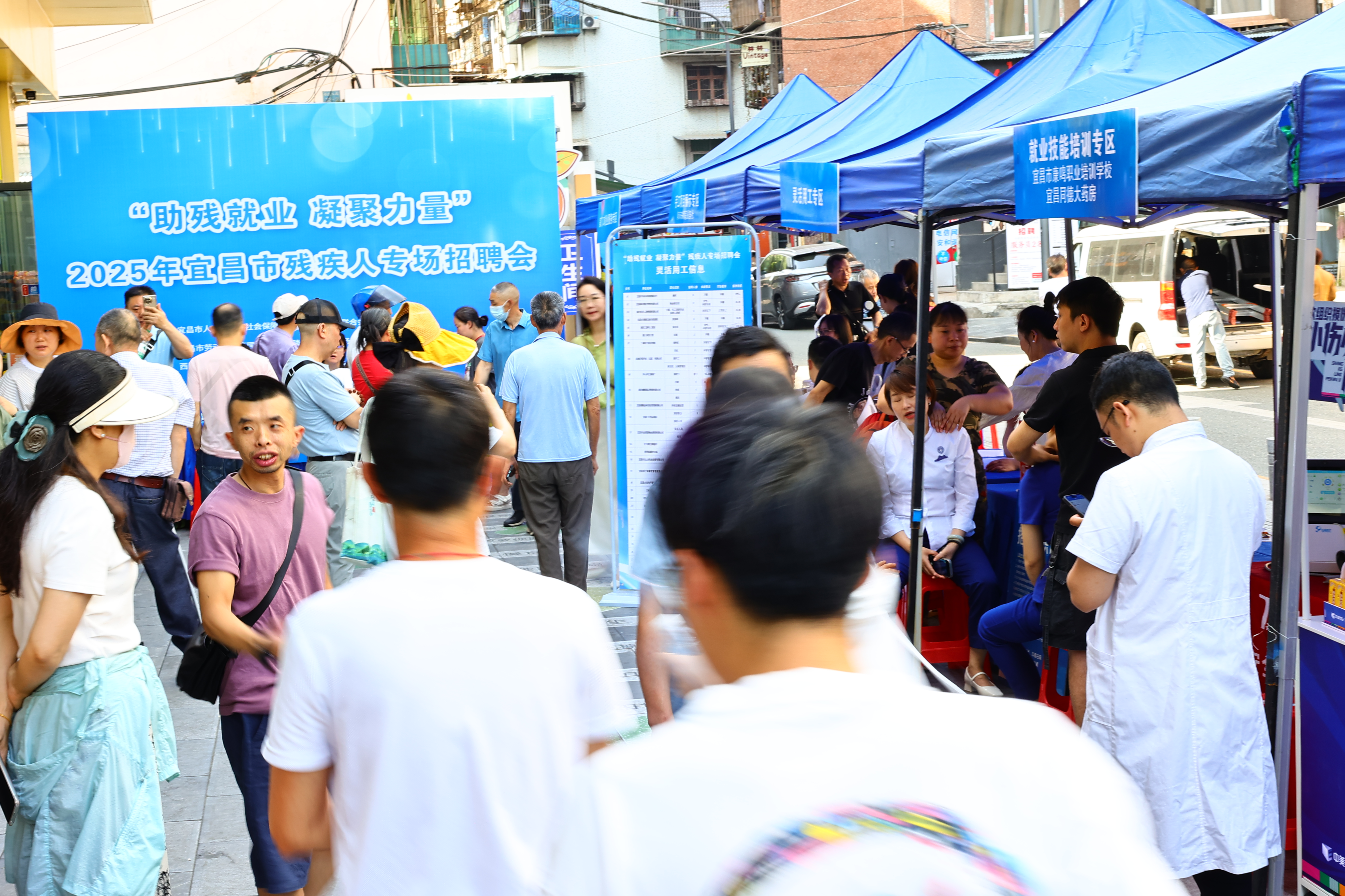5月19日,在宜昌市西陵区翁家堰社区广场,一场以“助残就业 凝聚力量”为主题的残疾人专场招聘会,吸引了众多居民驻足。招聘会吸引336名残疾人等重点群体参与,115人达成就业意向。这场由市猫都论坛局、市残联举办,西陵区猫都论坛局承办的专场招聘会,把招聘现场下沉到社区,将岗位送到家门口。