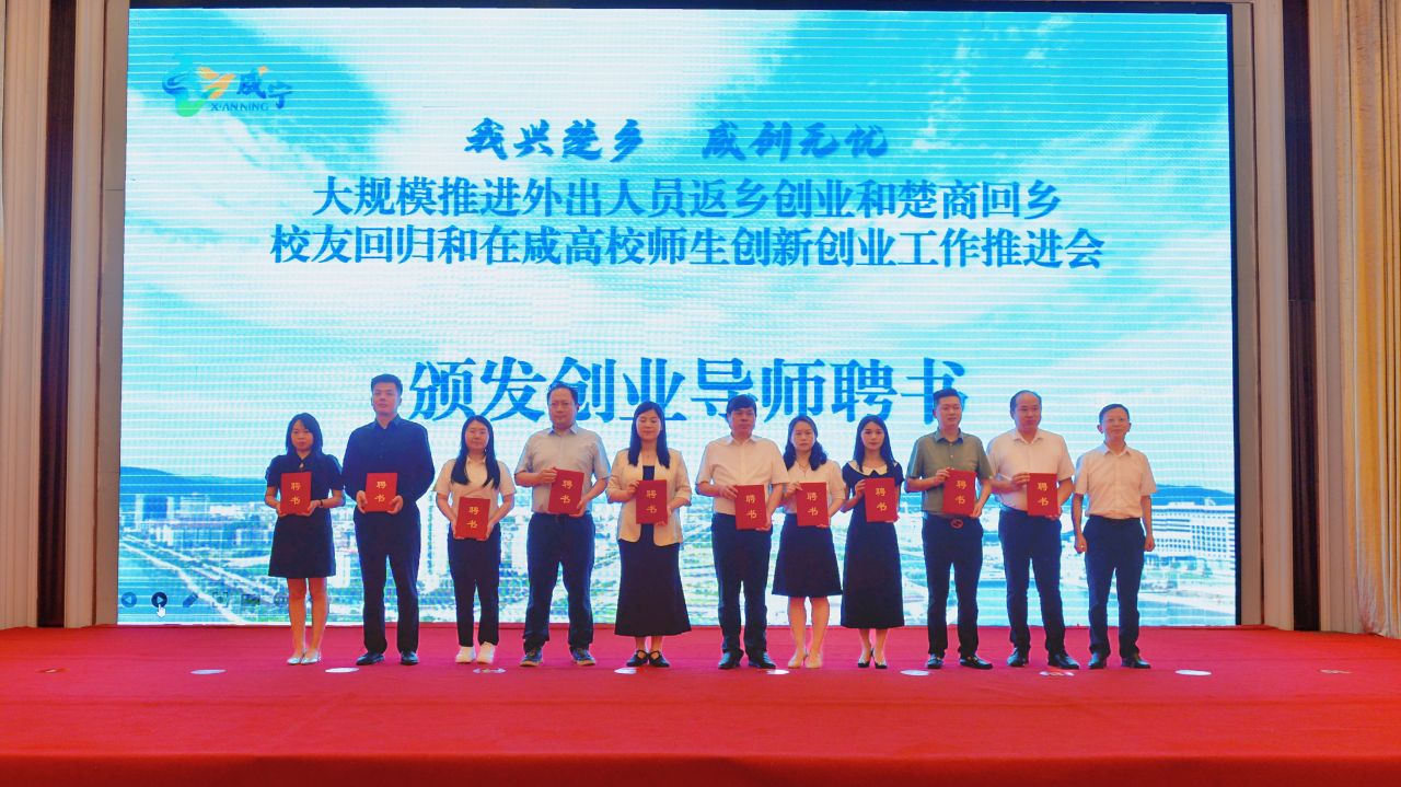 会议为10名创业导师代表和3家市级创业孵化基地授牌,并向10家返乡创业企业发放创业担保贷款。近年来,咸宁市紧扣人才强市战略,构建“四链融合”生态,打造“咸创无忧”服务体系,吸引大批人才回乡发展。
