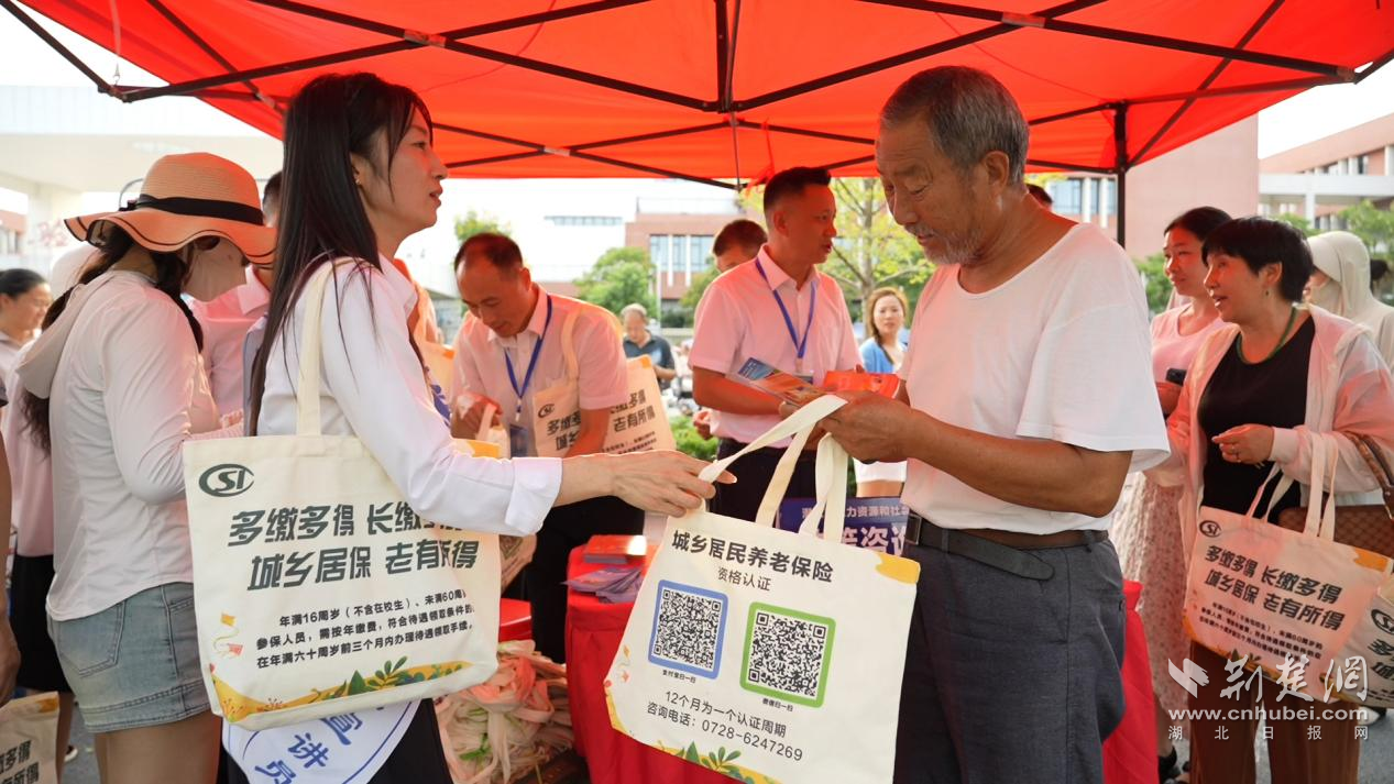本次活动覆盖潜江市东、南、西、北主要校区。校门口均设置了政策咨询台和宣传展架,工作人员佩戴绶带,开展一对一政策宣讲,重点回应群众关切的缴费方式、养老金待遇计算等问题,通过举例子为群众算好“养老账”。不少家长聚集在展台前认真阅读资料、互相讨论,现场气氛热烈。活动累计发放“小书包”2000余个,接受咨询700余人次。