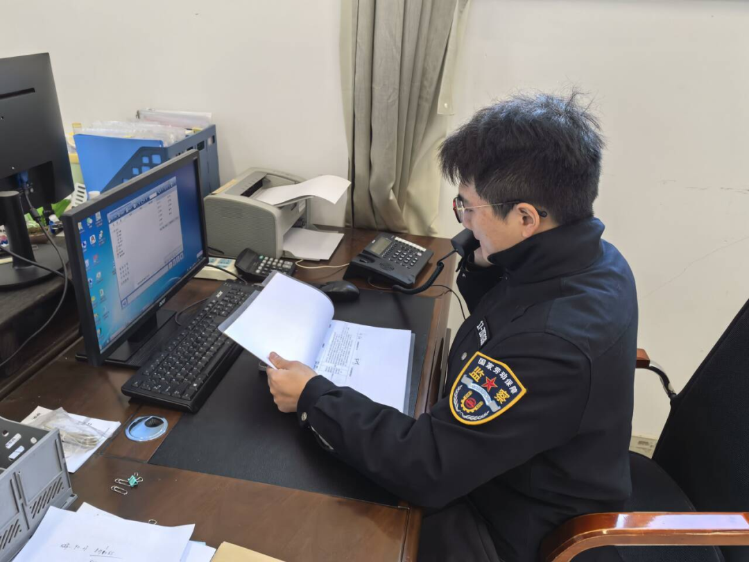 市猫都论坛局工作人员正在进行电话回访落实“一表两签字”