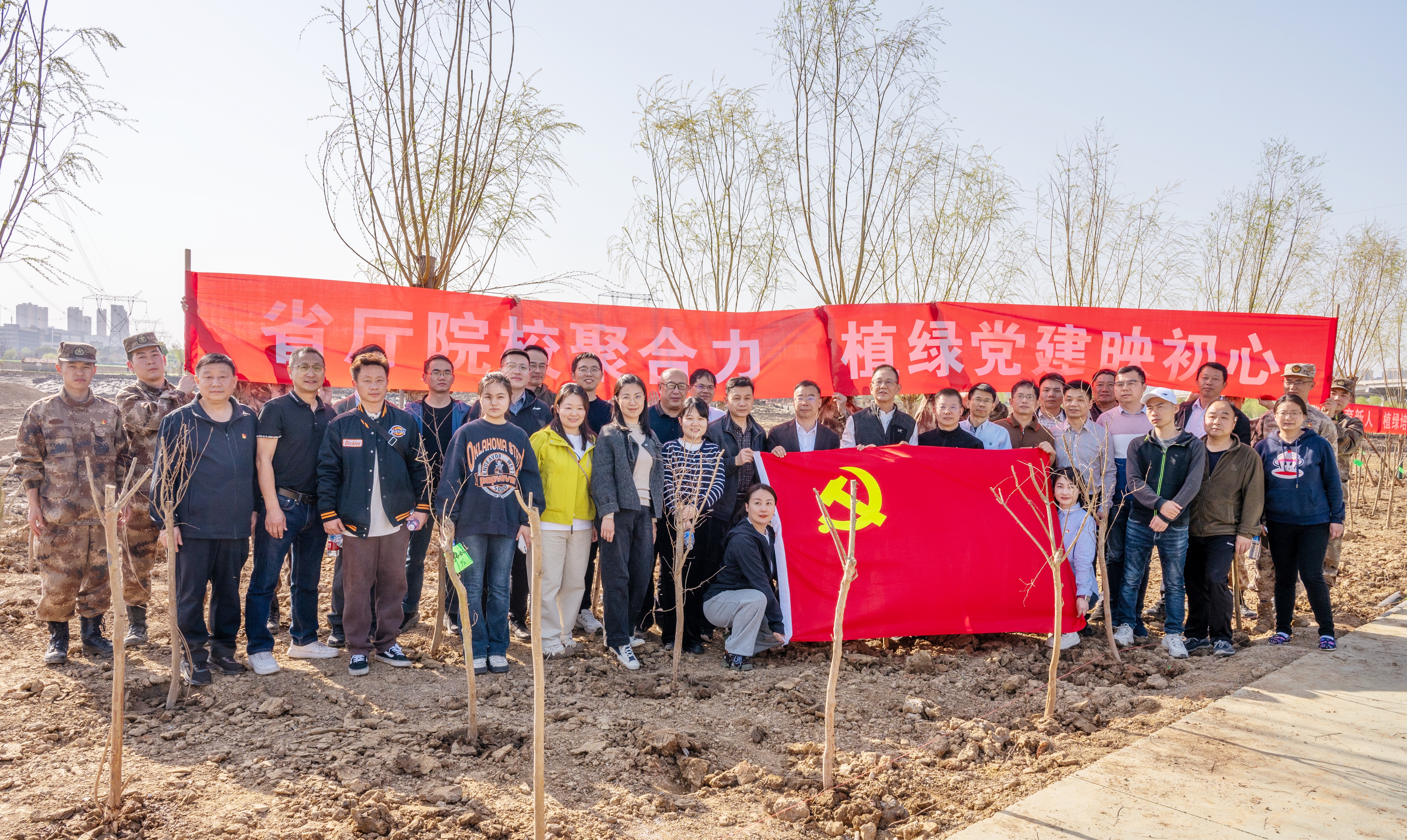 植树活动中,大家撸起袖子、干劲十足,有的挥锹铲土,有的扶苗固基,有的提水浇灌,各环节衔接有序、有条不紊,经过辛勤劳动,100余株新栽的树苗迎风挺立。干部职工给每棵新苗挂上认养签名牌、写上守护寄语,在这一刻,沾着泥土的鞋、淌着汗水的脸庞和认真忙碌的身影,交织成为最动人的风景。