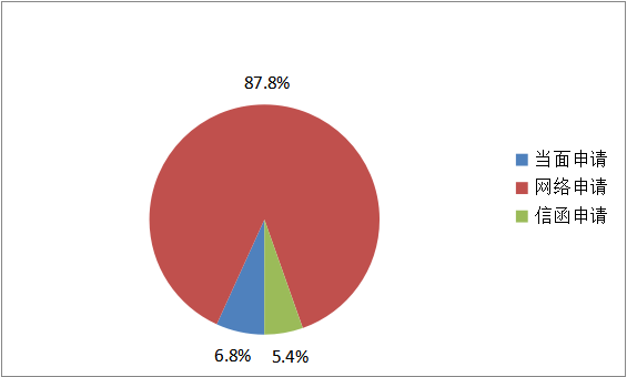 2018年度,通过当面、网络、信函等多种形式受理信息公开申请221件,其中,当面申请为15件,网络申请为194件,信函申请为12件,所占比重分别为6.8%、87.8%、5.4%。